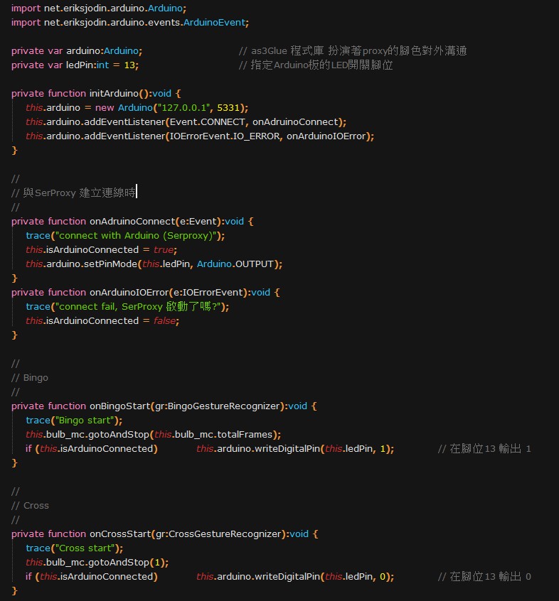 使用as3Glue程式庫來與Arduino(實際上是SerProxy)連線,
